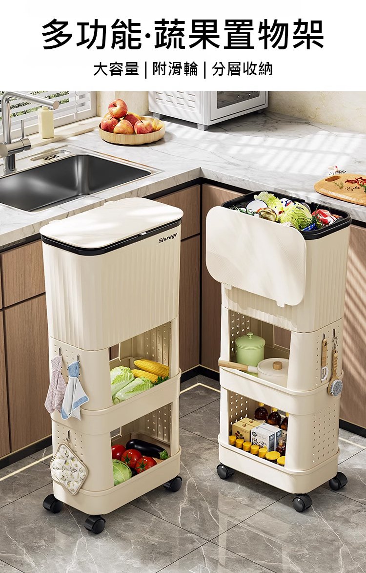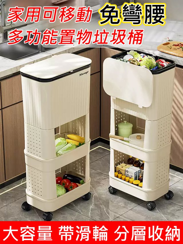 半小時前【不彎腰】家用可移動多功能置物垃圾桶 - 【超殺*贈20垃圾袋】1入組$279