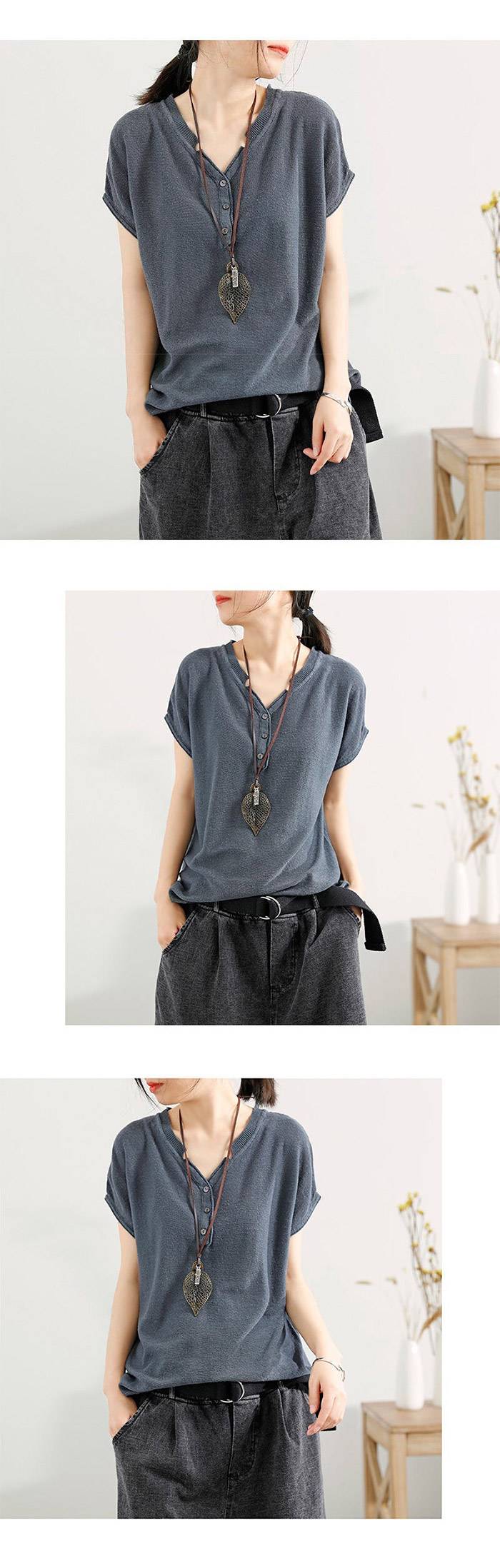 【夏季熱銷款】冰絲薄款V領短袖【超薄透氣】【舒適百搭】【促銷活動還在進行中哦!】